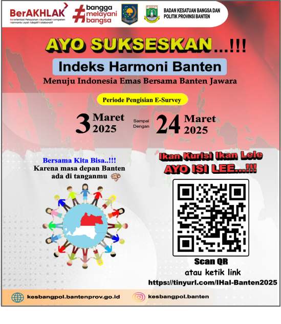 Ikan Kurisi Ikan Lele, Ayo Isi Lee...!!! , Ayo sukseskan Indeks Harmoni Banten Menuju Indonesia Emas Bersama Banten Jawara "Bersama kita bisa karena masa depan Banten ada ditanganmu".